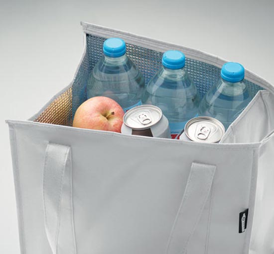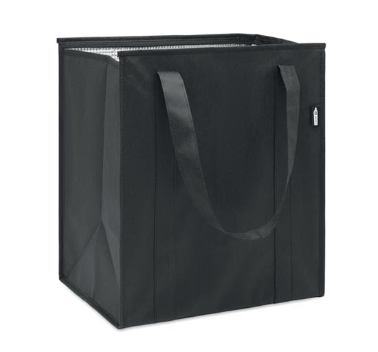 Ισοθερμική Τσάντα ψυγείου από non-woven ύφασμα RPET 80gr/m². Υλικό μόνωσης: aluminium foil. Κύριο διαμέρισμα με φερμουάρ στο πάνω μέρος.